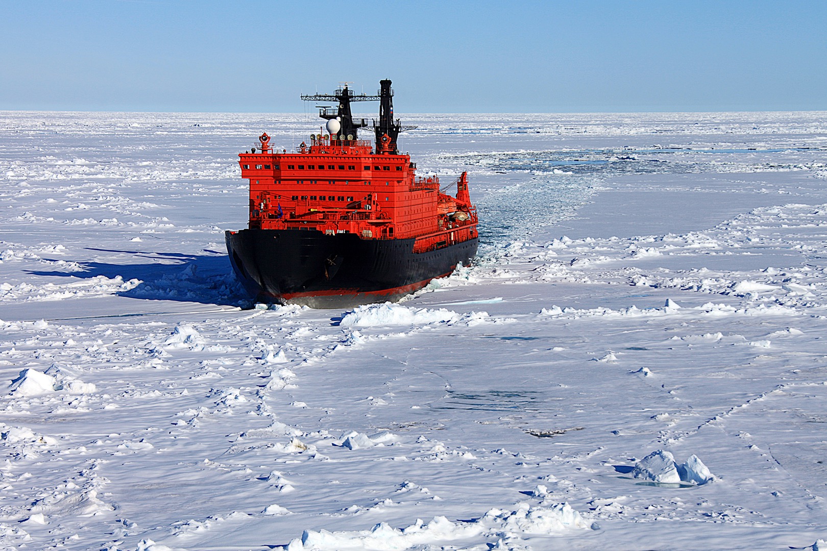 Der Atomeisbrecher "50 Years of Victory" unterwegs im Packeis. (© Sergey Zemnuhov)
