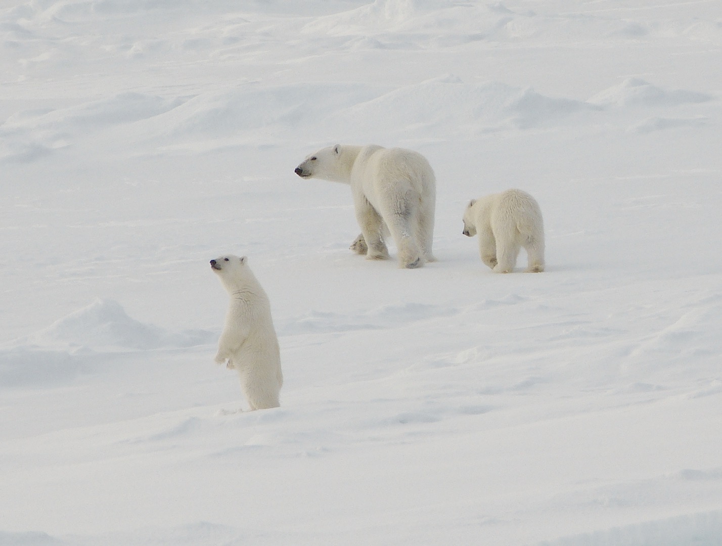 Eisbärenmütter mit Jungtieren sind häufig sehr neugierig und inspizieren das Schiff (© Kerstin Stock)