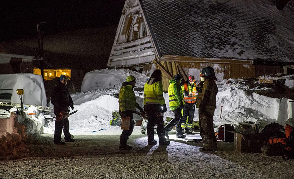 Während der vergangenen Nacht hatte die lokale Aufmerksamkeit noch eher dem Hundehof am Ortsausgang zum Adventdalen gegolten, wo mehrere Leute Wache hielten, damit nicht Hunde unkontrolliert tief zugeschneit werden. Die Tiere sollen alle wohlauf sein.