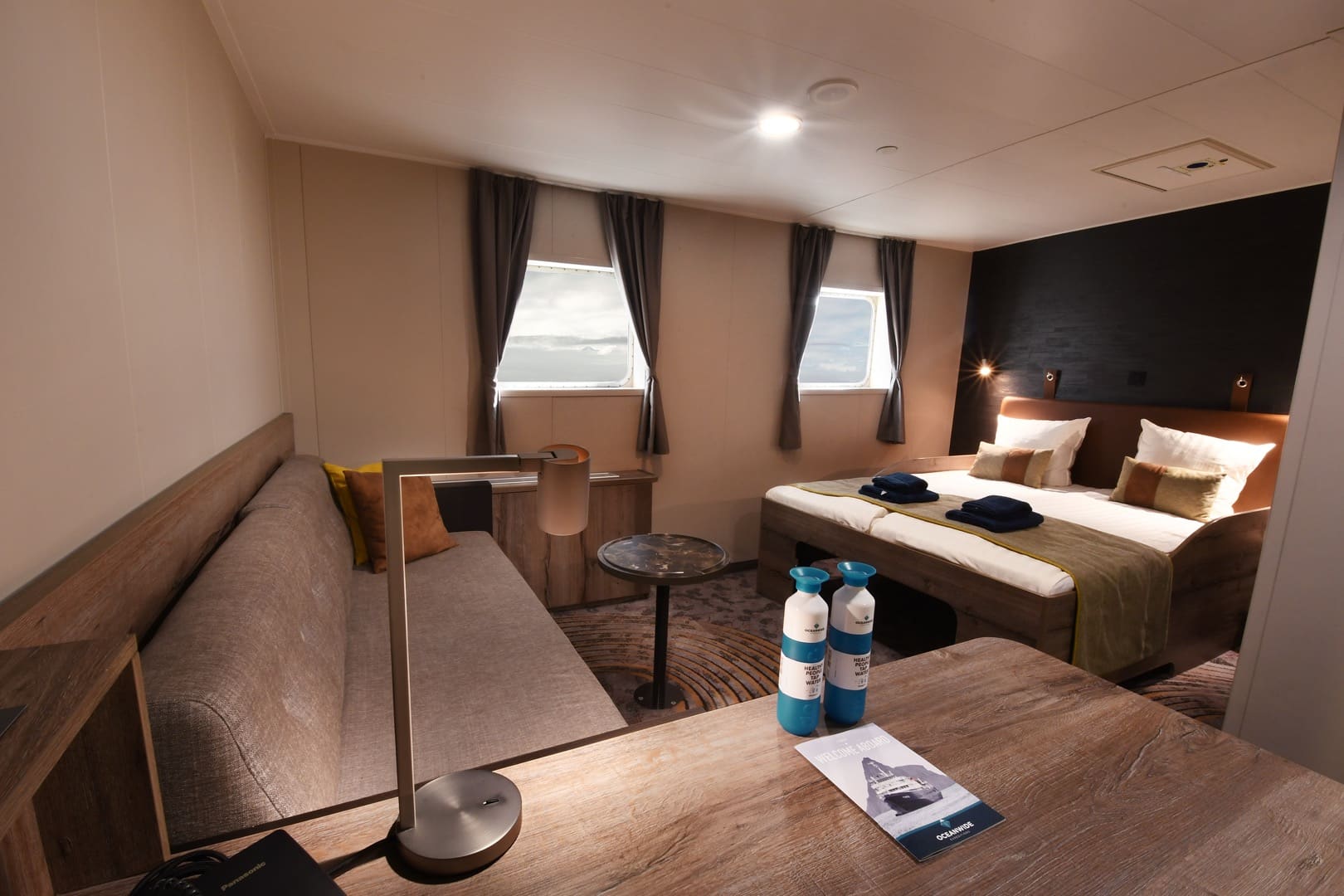 Beispiel einer Kabine Kat. D: Zweibettkabine Deluxe - Eckkabine mit zwei Fenstern (© Monica Salmang / Oceanwide Expeditions)
