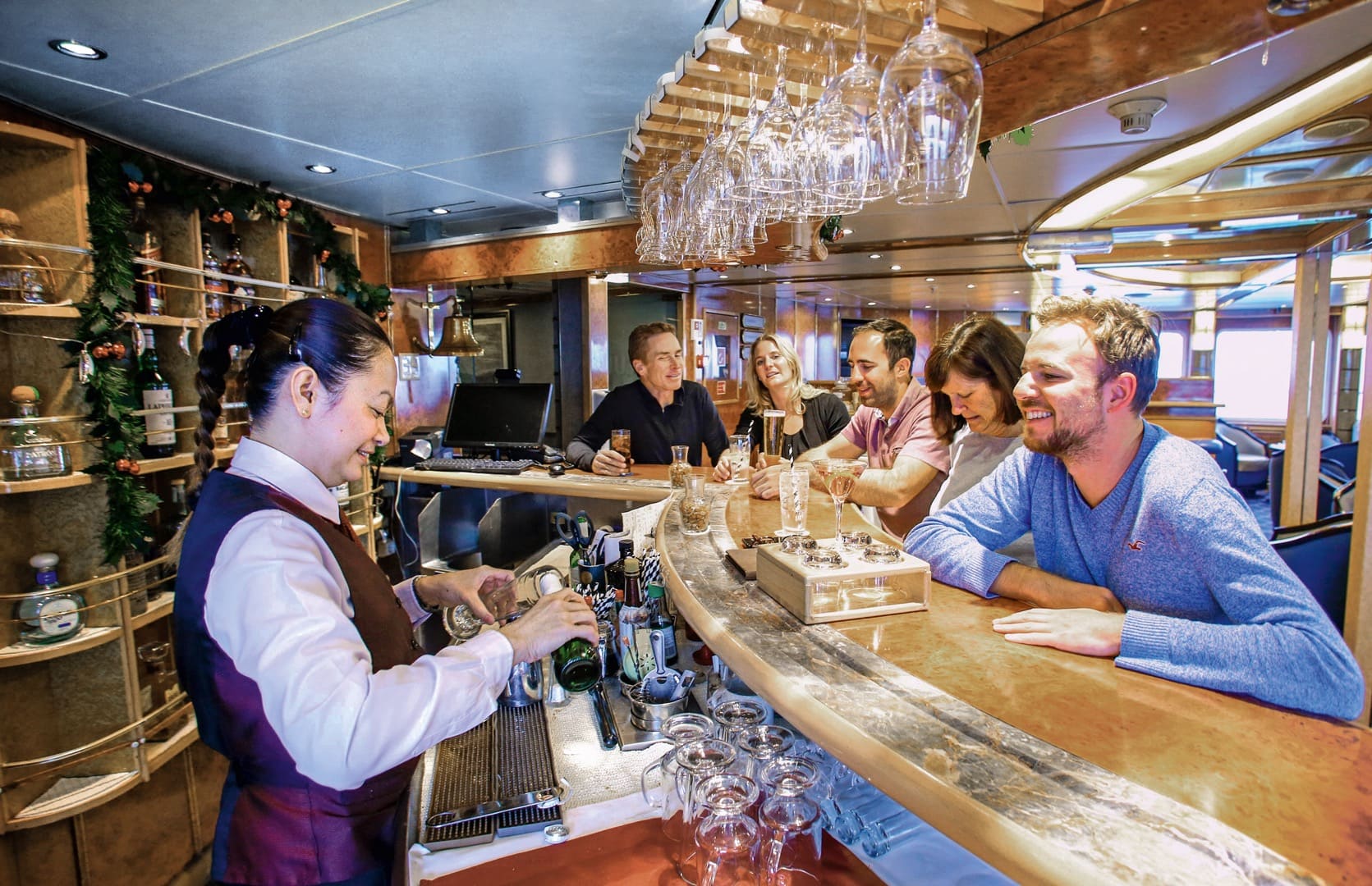 Die «SEA SPIRIT» ist luxuriös ausgerüstet. Sie verfügt über eine Bar und eine Lounge, Bibliothek, Speisesaal , Bistro und Fitnessraum. Alle Passagierdecks sind mit einem Fahrstuhl erreichbar. Zudem gibt es zwei Aufenthaltsräume und ein Sonnendeck mit Jacuzzi. Auf der «SEA SPIRIT» kommt nicht das Gefühl eines Kreuzfahrtschiffes auf, man fühlt sich eher auf einer grossen Jacht. Viel mehr besticht es durch den lockeren Umgang und dem Beobachten der Fauna und Flora. Die Kleidung an Bord ist sportlich-leger.